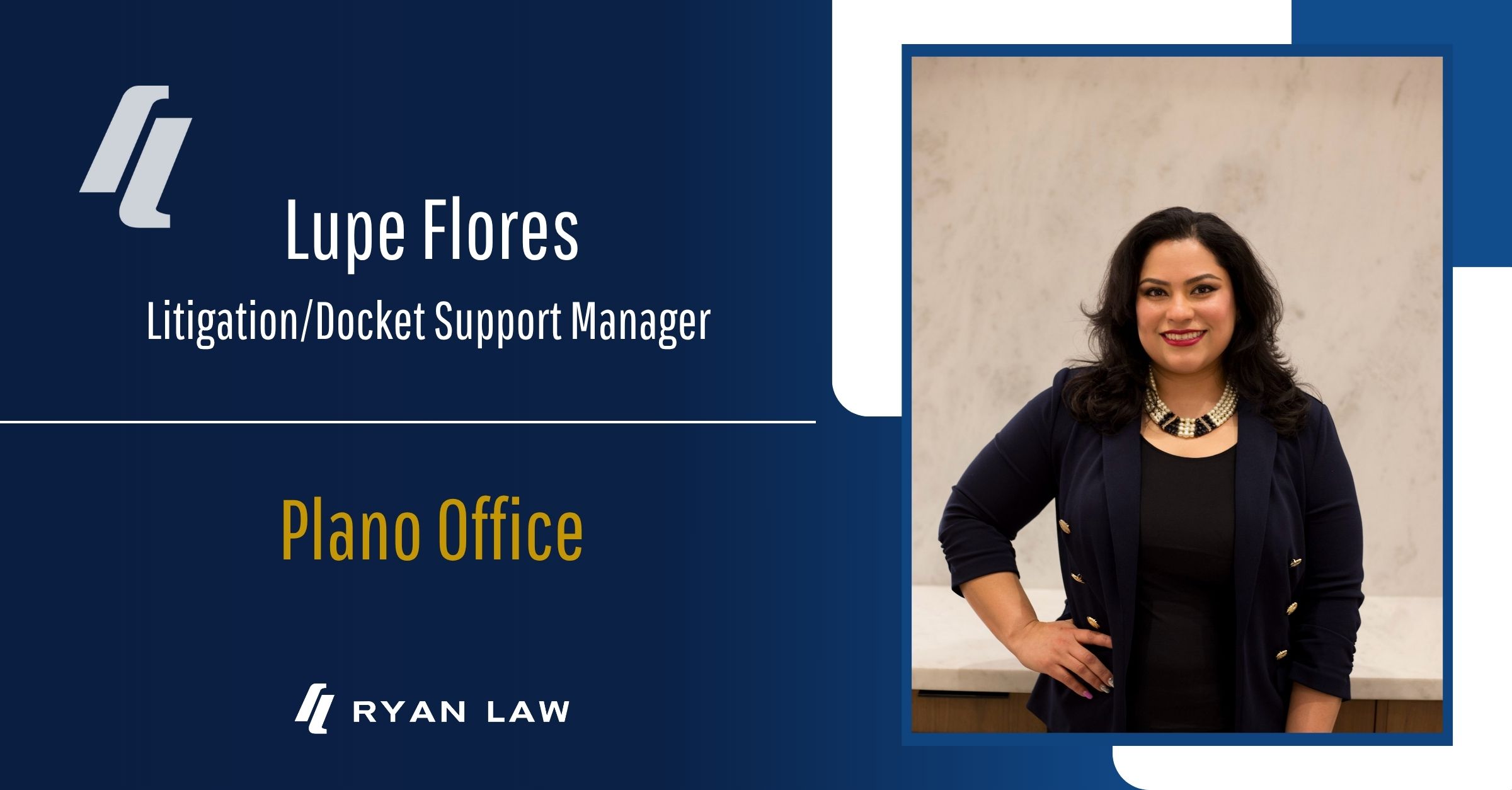 Ryan Law Firm is pleased to feature our Litigation/Docket Support Manager, Guadalupe “Lupe” Flores, based out of the firm’s Plano office.  Lupe works with the Firm’s Director of Litigation, Michael Moore, in the management of the Firm’s high-volume litigation docket of property tax matters for the Texas practice, management of the trial docket, training attorneys and staff on litigation practices/procedures, and providing trial support.